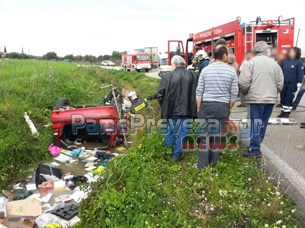 Σύμφωνα με τις πρώτες πληροφορίες  Ι.Χ. αυτοκίνητο εξετράπη της πορείας του στον δρόμο μετά την 131 ΣΜ του Aκτίου προς Λευκάδα με αποτέλεσμα να πέσει μέσα σε αρδευτικό χαντάκι.