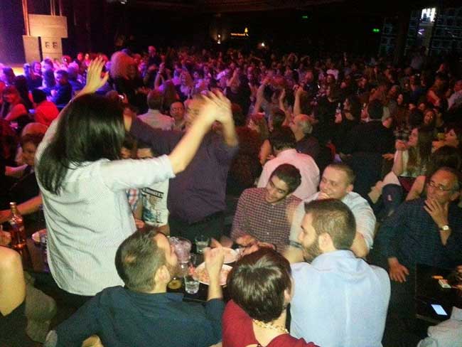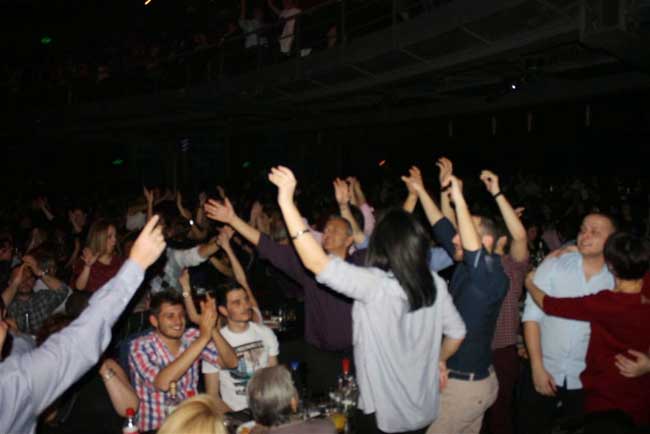Το πρόγραμμα πλησίαζε στο τέλος του, ο κόσμος δεν έλεγε να καθίσει στα τραπέζια του συνέχισε να χορεύει, να τραγουδάει και να χειροκροτεί.