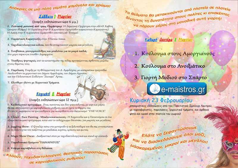 Πρόγραμμα Αποκριάτικων Εκδηλώσεων στο Δήμο Αμφιλοχίας