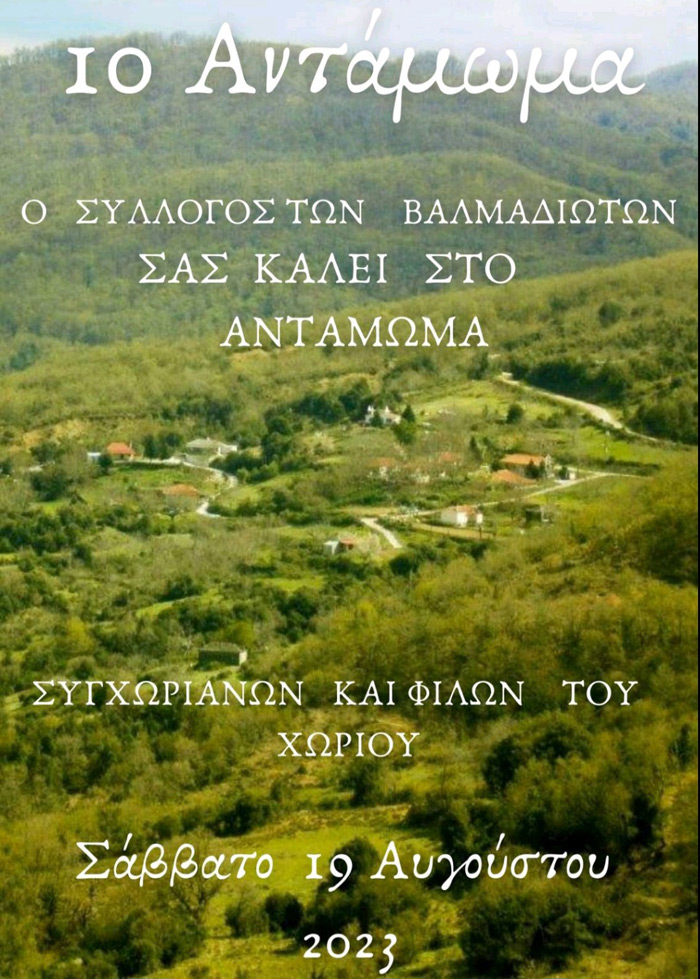 Θέμα: «Πρόσκληση στο 10ο αντάμωμα των Βαλμαδιωτών Βάλτου στις 19 Αυγούστου 2023»