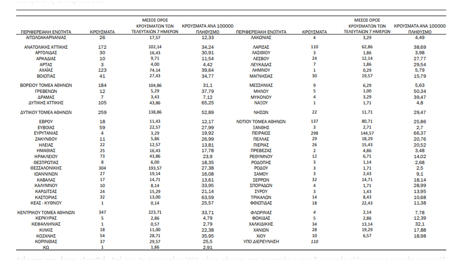 Πόσα είναι και που εντοπίζονται σήμερα τα κρούσματα covid-19
