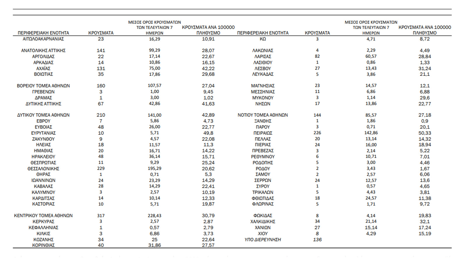 7 εντοπίστηκαν κατόπιν ελέγχων στις πύλες εισόδου της χώρας. Ο συνολικός αριθμός των κρουσμάτων ανέρχεται σε 214.661