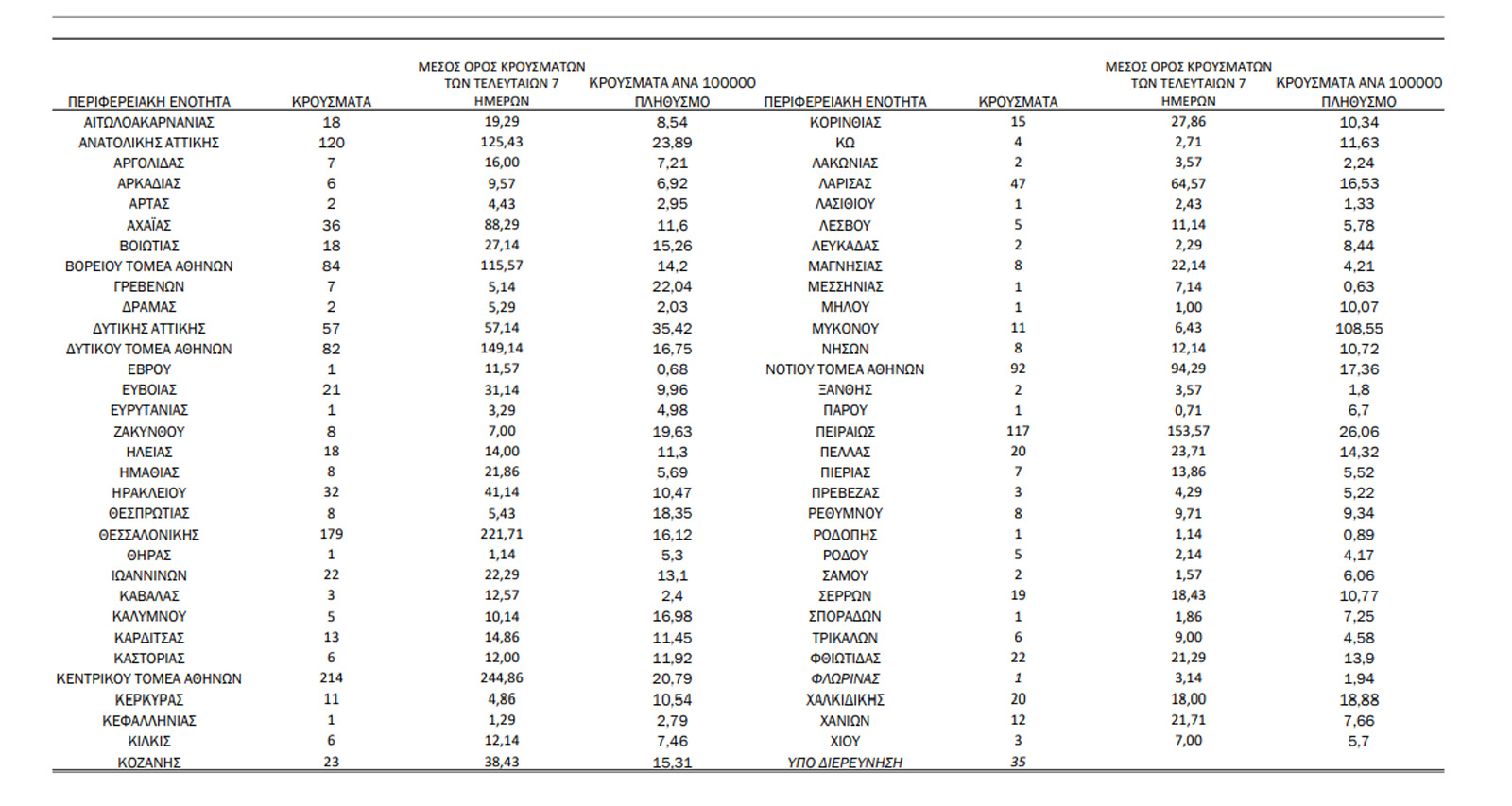 Πόσα είναι τα κρούσματα της Κυριακής και που εντοπίζονται