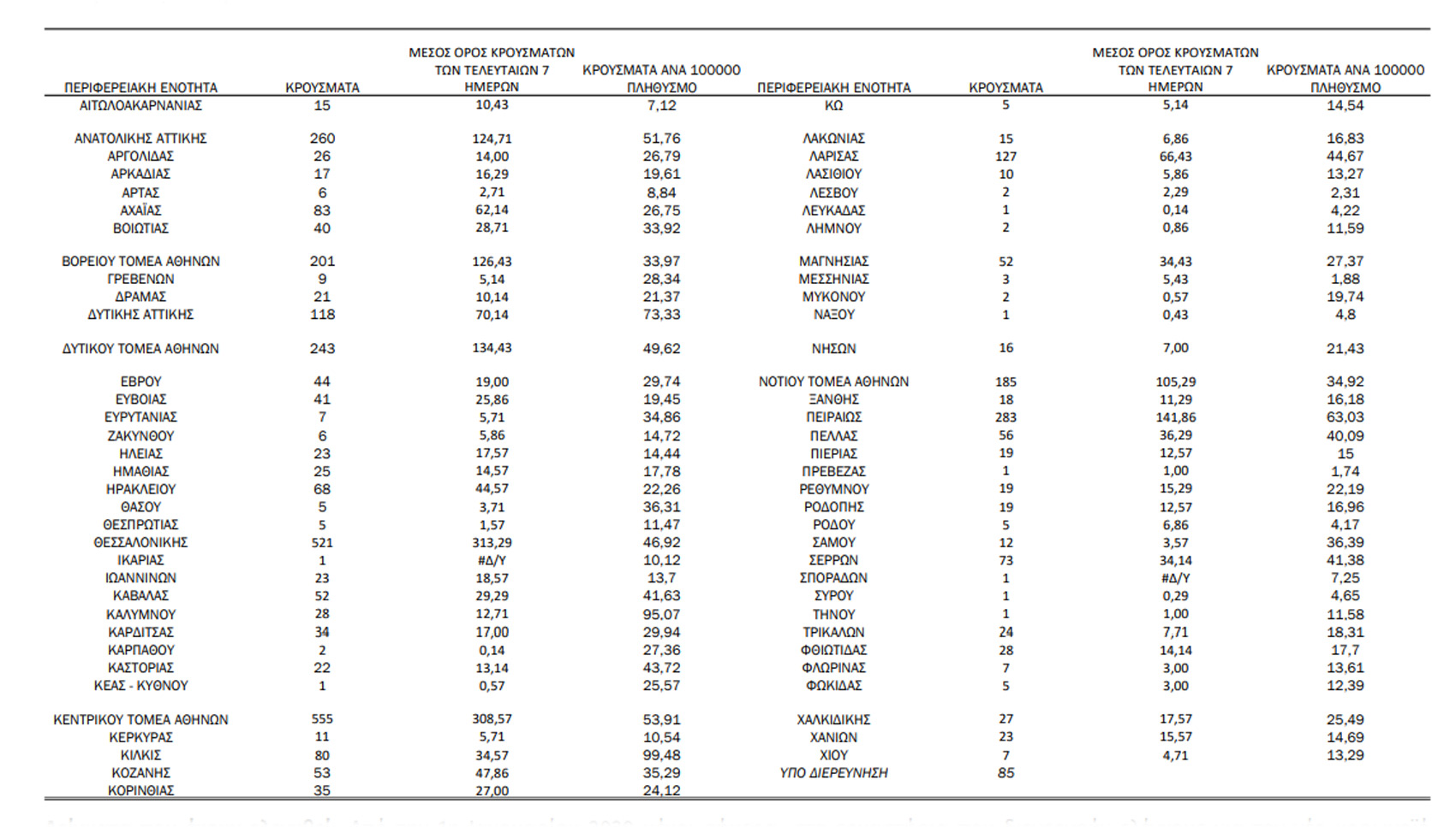 Πόσα είναι τα σημερινά κρούσματα και πως κατανέμονται