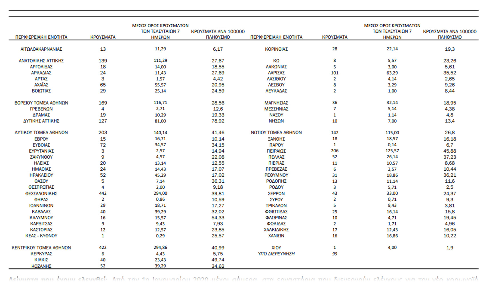 Πόσα είναι τα σημερινά κρούσματα και που εντοπίζονται
