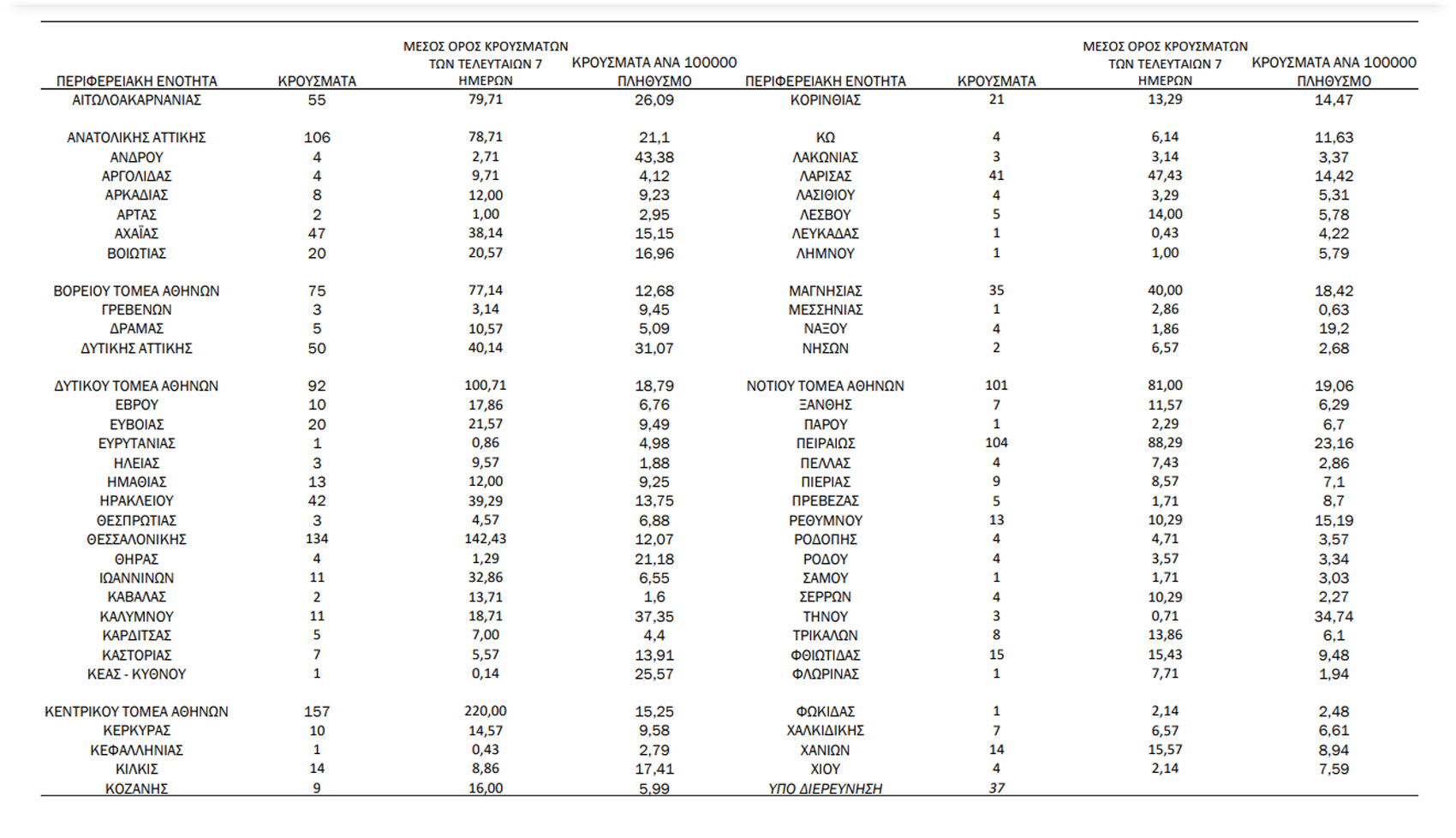Πόσα είναι τα σημερινά κρούσματα και που εντοπίζονται