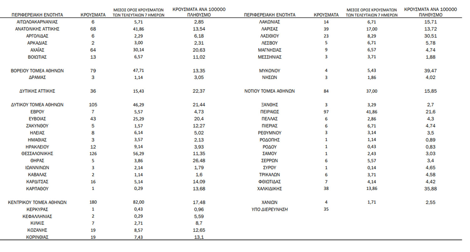 Πόσα και που εντοπίζονται τα σημερινά κρούσματα