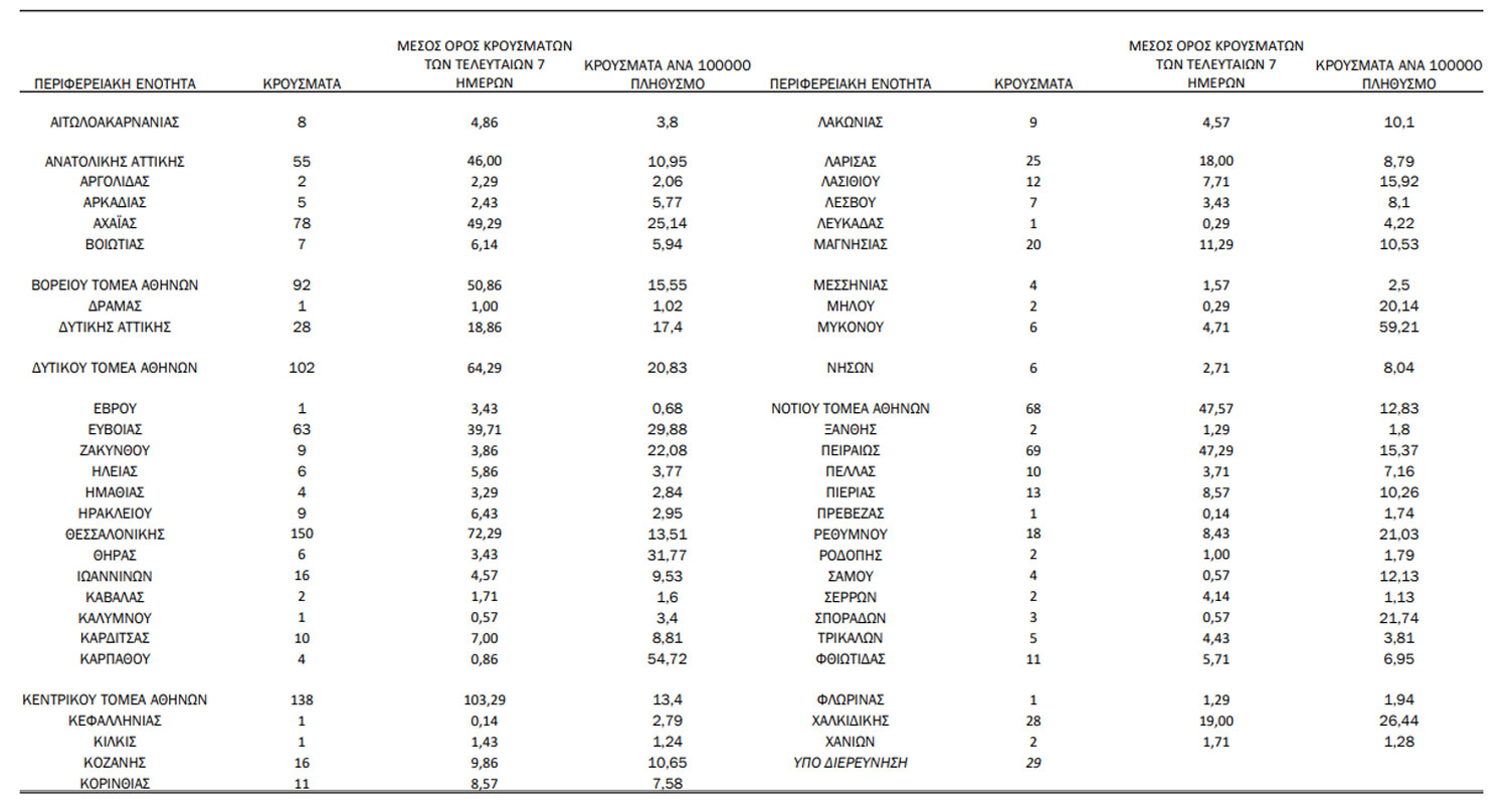Πόσα και που εντοπίζονται τα σημερινά κρούσματα στην Ελλάδα