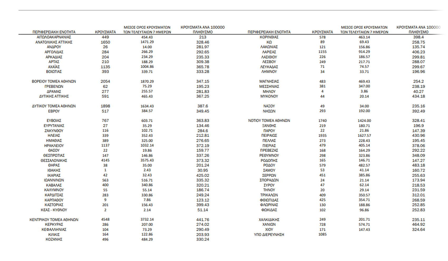Σημερινά κρούσματα στην Ελλάδα – 37.676 – Κατανομή