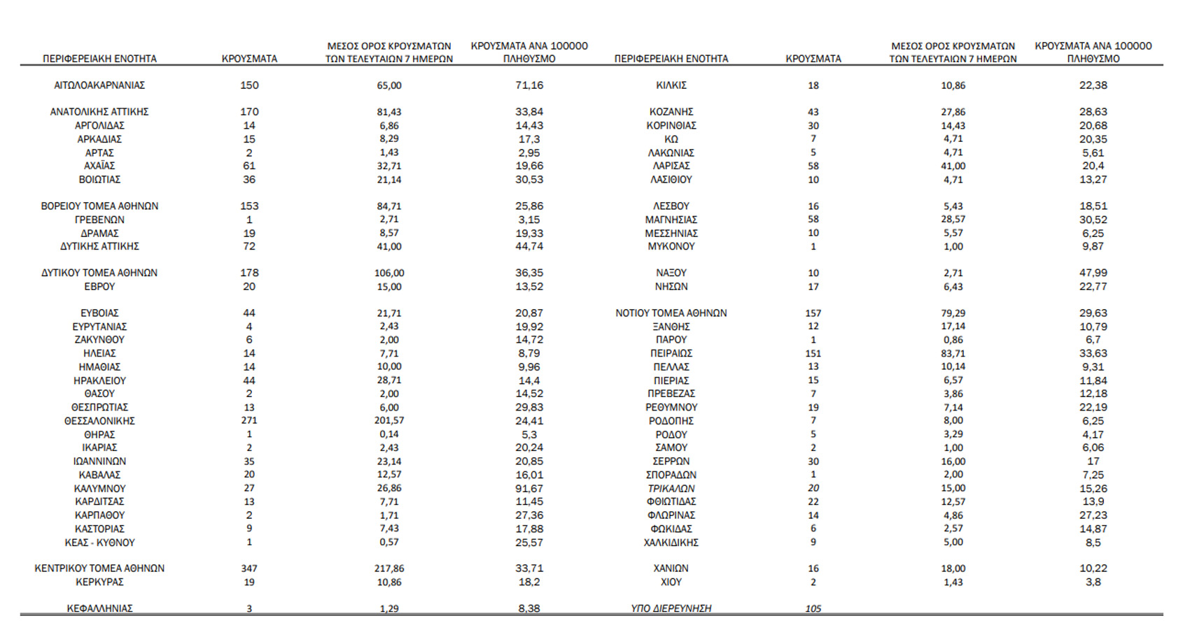 Αναλυτικά η ανακοίνωση του ΕΟΔΥ για τα νέα κρούσματα σήμερα 07/05: