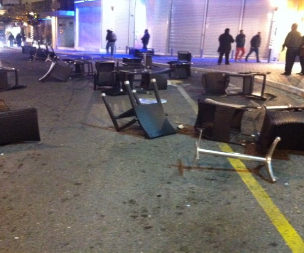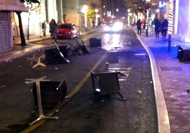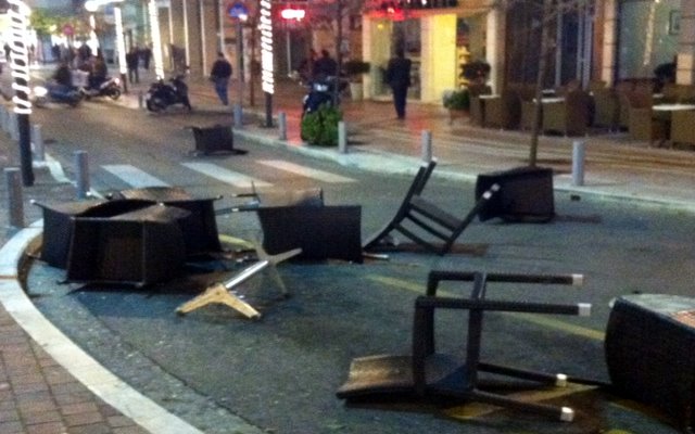 Οι νεαροί άρπαξαν καρέκλες από παρακείμενες καφετεριες και τις πέταξαν στη μέση των δρόμων του κέντρου.