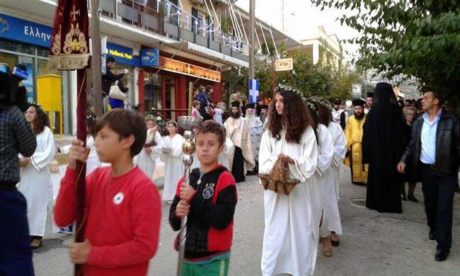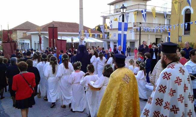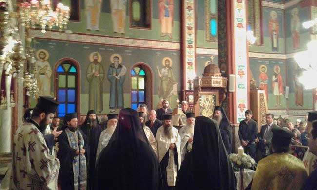 Μετά την εν πομπή είσοδο στον ναό πραγματοποιήθηκε Δέηση και στην συνέχεια τελέστηκε Πανηγυρικός Εσπερινός χοροσταντούντος μητροπολίτη Αιτωλίας και Ακαρνανίας κ.κ. Κοσμά καθώς και πλήθος ιερέων της περιοχής.