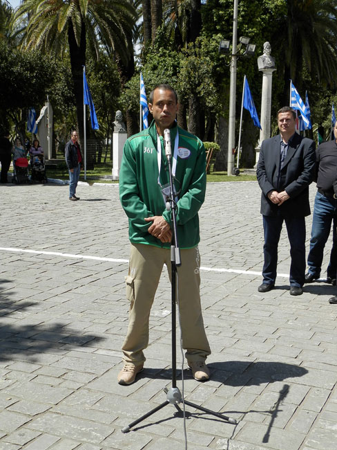 Ο Δήμαρχος Νίκος Καραπάνος, στην ομιλία του ανέφερε ότι «…η πόλη της Ελευθερίας, υποδέχεται σήμερα την Ολυμπιακή Φλόγα, με την ευχή το μήνυμά της να φτάσει σε κάθε σημείο του κόσμου.