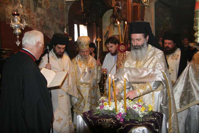 Ευχαριστώ πρωτίστως εσάς Σεβασμιώτατε για την εμπιστοσύνη που δείξατε στο προσωπό μου και για όλες τις νουθεσίες και συμβουλές που μου προσφέρατε, ώστε πάρα το νεαρό της ηλικίας μου, να μπόρω να υπηρετίσω το θέο και την εκκλησία. Να γνωρίζετε ότι σας τίμω για το αγωνιστικό και ορθοδόξο φρόνημα σας,την μαρτυρία της πίστεως,που δίδετε καθημερίνα, και την γνήσια προσήλωση στα ιδανικά της πατρίδος μας.