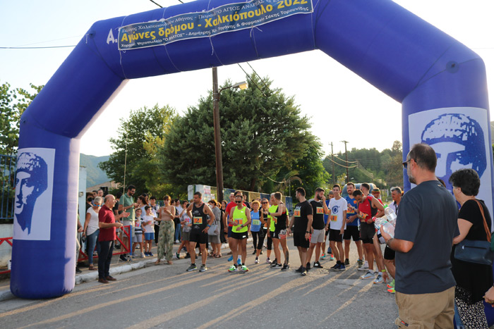 • Διαδρομή: Οι αθλητές θα εκκινήσουν από τον προαύλιο χώρο του Δημοτικού σχολείου θα κατέβουν τον κεντρικό δρόμο (οδός Γιάννη Κοντογιάννη) μέχρι τη διασταύρωση, θα στρίψουν δεξιά στον επαρχιακό δρόμο προς τα Λουτρά Χαλκιοπούλων. Στο σημείο που συμπληρώνονται 5.000μ από την αφετηρία (στην ευθεία μπροστά από το δασύλιο στα Λουτρά Χαλκιοπούλων) επιστρέφουν από την ίδια διαδρομή και τερματίζουν στο Δημ. Σχολείο.