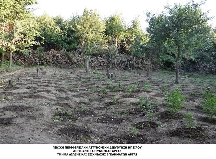 Ειδικότερα, οι αστυνομικοί, αξιοποιώντας κατάλληλα πληροφορίες, εντόπισαν σε αγροτική περιοχή της Άρτας εκχερσωμένη έκταση, περιβαλλόμενη από πυκνή και άγρια βλάστηση, όπου διαπιστώθηκε καλλιέργεια δενδρυλλίων κάνναβης.