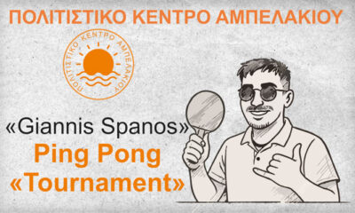 Το Πολιτιστικό Κέντρο Αμπελακίου ανακοινώνει τη διοργάνωση του ετήσιου Τουρνουά Πινγκ-Πονγκ, το οποίο από φέτος θα φέρει το όνομα «Γιάννης Σπανός», στη μνήμη του αδικοχαμένου νέου...
