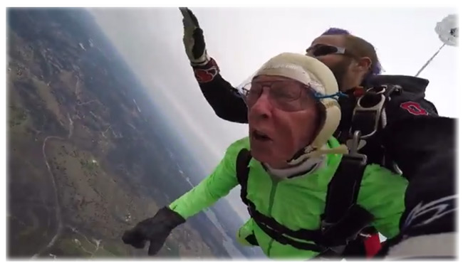 Ο Αλ Μπλάσκε και τα εγγόνια του έκαναν ελεύθερη πτώση από αεροπλάνο. Το καλύτερο είναι πως ο Αλ Μπάσκε είναι 103 ετών. Ο Αλ Μπλάσκε επιβίωσε...