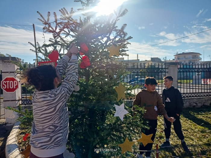Μία ωραία χριστουγεννιάτικη δράση με τίτλο “Το δέντρο των ευχών” πραγματοποίησε σήμερα 20/12 /2023 η Ε.Ο.Ε.Δ στον αύλειο χώρο της.Μέσα σε γιορτινή ατμόσφαιρα και διάθεση και υπό τους ήχους χριστουγεννιάτικων τραγουδιών,οι μαθητές από δύο Δημοτικά σχολεία την 6η τάξη του 1ου και την 6η τάξη του 4ου(μετά από κλήρωση )δημιούργησαν χρυσά αστέρια και καρδούλες και γράφοντας πάνω τους ευχές τα κρέμασαν στο Δέντρο των Ευχών!!