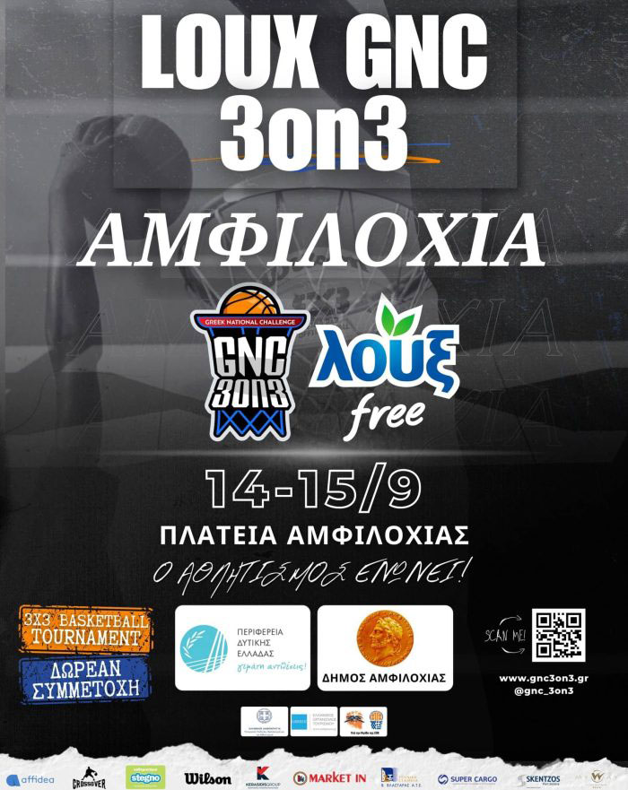 Το LOUX GNC 3on3 | ΑΜΦΙΛΟΧΙΑ 2024, διεξάγεται το διήμερο 14-15 Σεπτεμβρίου στην Πλατεία Αμφιλοχίας και αποτελεί μία συνδιοργάνωση της Περιφέρειας Δυτικής Ελλάδας, του Δήμου Αμφιλοχίας και του GNC 3on3, υπό την αιγίδα του Υπουργείου Παιδείας, Θρησκευμάτων και Αθλητισμού, του Ελληνικού Οργανισμού Τουρισμού και της Ελληνικής Ομοσπονδίας Καλαθοσφαίρισης.