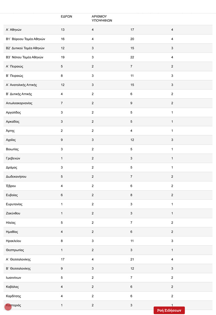 ΠΙΝΑΚΑΣ ΕΔΡΩΝ, ΑΡΙΘΜΟΥ ΥΠΟΨΗΦΙΩΝ ΚΑΙ ΣΤΑΥΡΩΝ ΠΡΟΤΙΜΗΣΗΣ