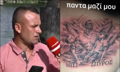 Στο τατουάζ φαίνεται ο ίδιος με φτερά αγγέλου να κρατάει στα χέρια του τα δύο παιδιά, τα οποία επίσης έχουν φτερά, αναγράφοντας τα ονόματά τους Ο...