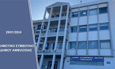 Τακτική συνεδρίαση του Δημοτικού Συμβουλίου Αμφιλοχίας θα πραγματοποιηθεί στο Δημαρχείο Αμφιλοχίας την 13η Δεκεμβρίου 2023, ημέρα Τετάρτη και ώρα18:00, για συζήτηση και λήψη αποφάσεων στα παρακάτω...