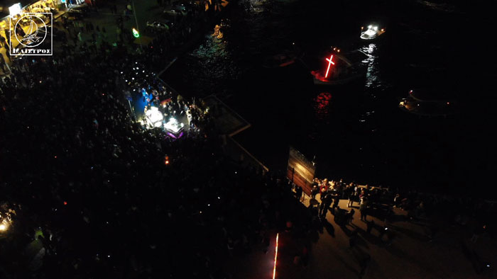 Η τελετή ξεκίνησε με μεγάλη κατάνυξη, ενώ η συνέχεια της περιφοράς του Επιταφίου στους δρόμους της πόλης ήταν εντυπωσιακή. Η πίστη και η συμμετοχή των πολιτών έδωσαν μια ξεχωριστή διάσταση σε αυτήν την παράδοση που διατηρείται εδώ και αιώνες. Σε αυτή την ιδιαίτερη περιφορά, έλαβε χώρα και μια νέα πρωτοβουλία, καθώς για πρώτη φορά πραγματοποιήθηκε τελετουργικό εντός θαλάσσης. Ένας γιγάντιος φωτεινός σταυρός και δάδες στο νερό δημιούργησαν μια μοναδική ατμόσφαιρα κατά τη διάρκεια της συνάντησης των δύο Επιταφίων στην Κεντρική πλατεία..